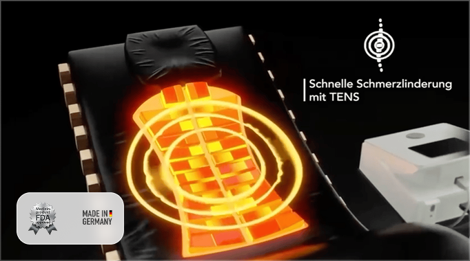 Die integrierte TENS-Technologie sorgt bereits ab der ersten Anwendung für spürbare Schmerzlinderung. Sanfte Impulse blockieren Schmerzsignale und aktivieren die körpereigene Schmerzhemmung – ganz ohne Medikamente.